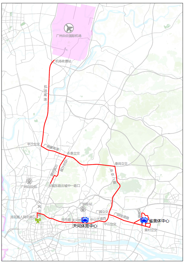 连接广州白云国际机场与驻地酒店的专用车道: