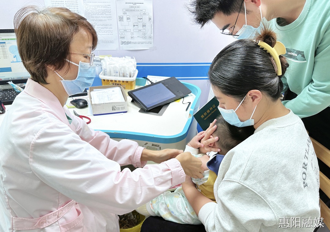 在淡水街道第一社区卫生服务中心接种门诊内,正有序迎接接种人流:等候区的座椅上坐满了前来接种的居民,有挽着长辈的年轻人,也有抱着孩子的家长,大家自觉保持间距,不时翻看手中的接种知情同意书,现场秩序井然。