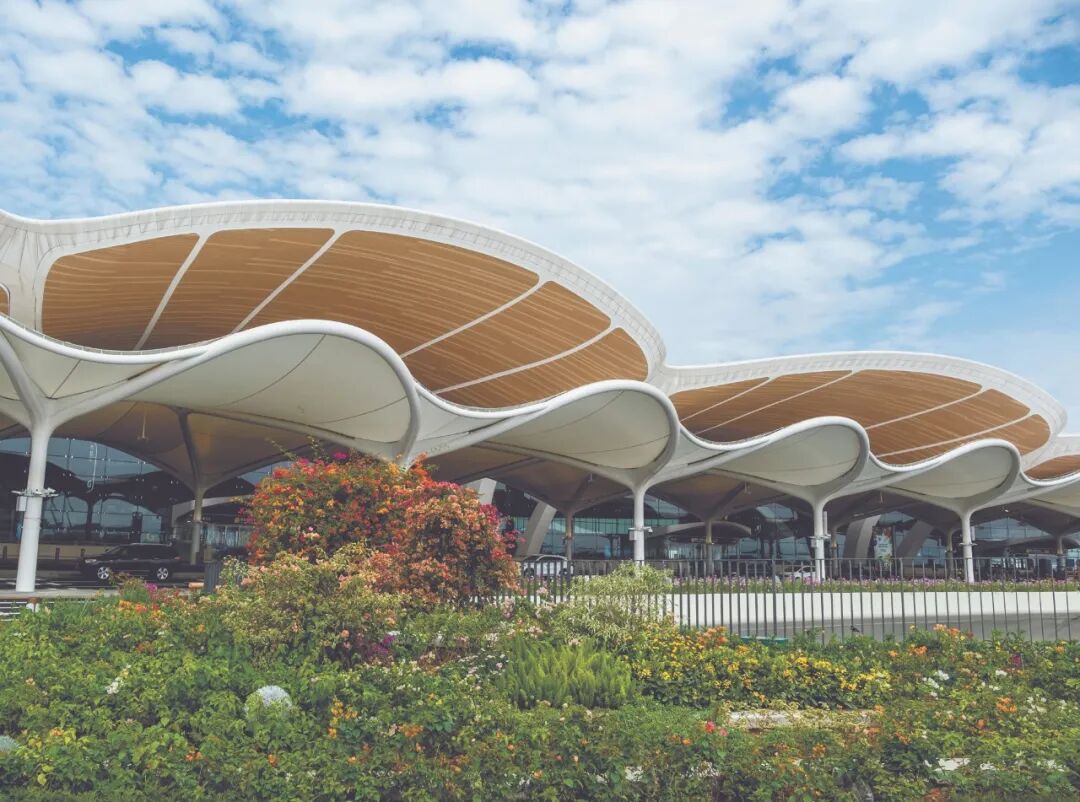 T3航站楼启动建设以来,企业接续为机场的屋檐檐口、室外吊顶、登机桥以及机场配套设施等提供内外墙铝单板、铝合金蜂窝板等建筑装饰材料,使用面积超10万平方米。
