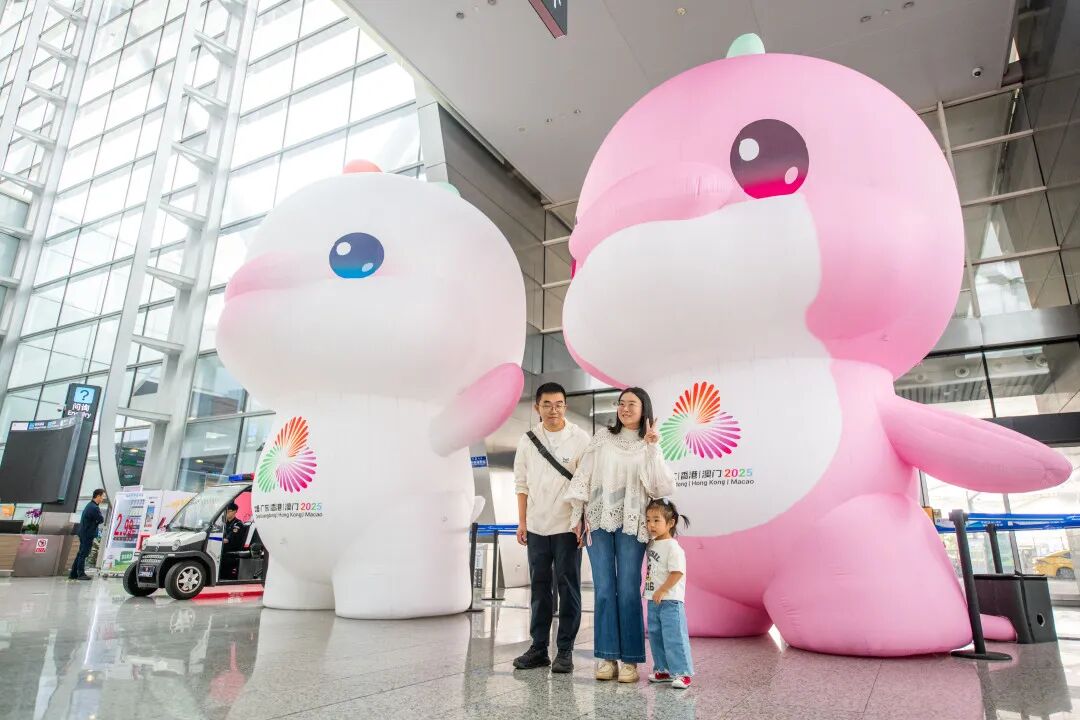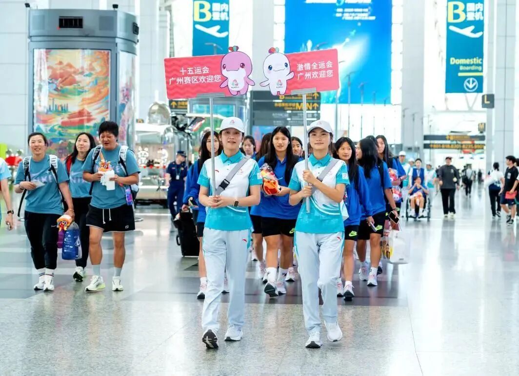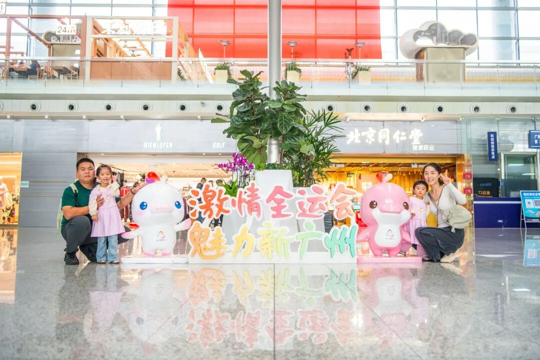 “一出航站楼就看到超大号‘喜洋洋’和‘乐融融’,特别惊艳。同时,志愿者服务人员就满怀微笑手持‘广州欢迎您’接机牌迎面而来,让人如沐春风。”刚刚飞抵广州的辽宁射击运动队领队拖着行李箱,一边招呼队员们在新布置的全运会吉祥物打卡点前合影,一边说道。