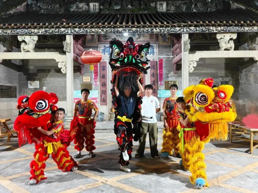 更令人振奋的是,除了跳绳队伍外,一支源自花都百年祠堂的乡村醒狮队,也在十五运会开幕式精彩亮相。罗仙村同福堂醒狮队的20名少年队员,携八头雄狮登上十五运会开幕式舞台。这群9至18岁的少年,凭借梅花桩等高难度技艺,推动南狮精气神从祠堂走向全运会。