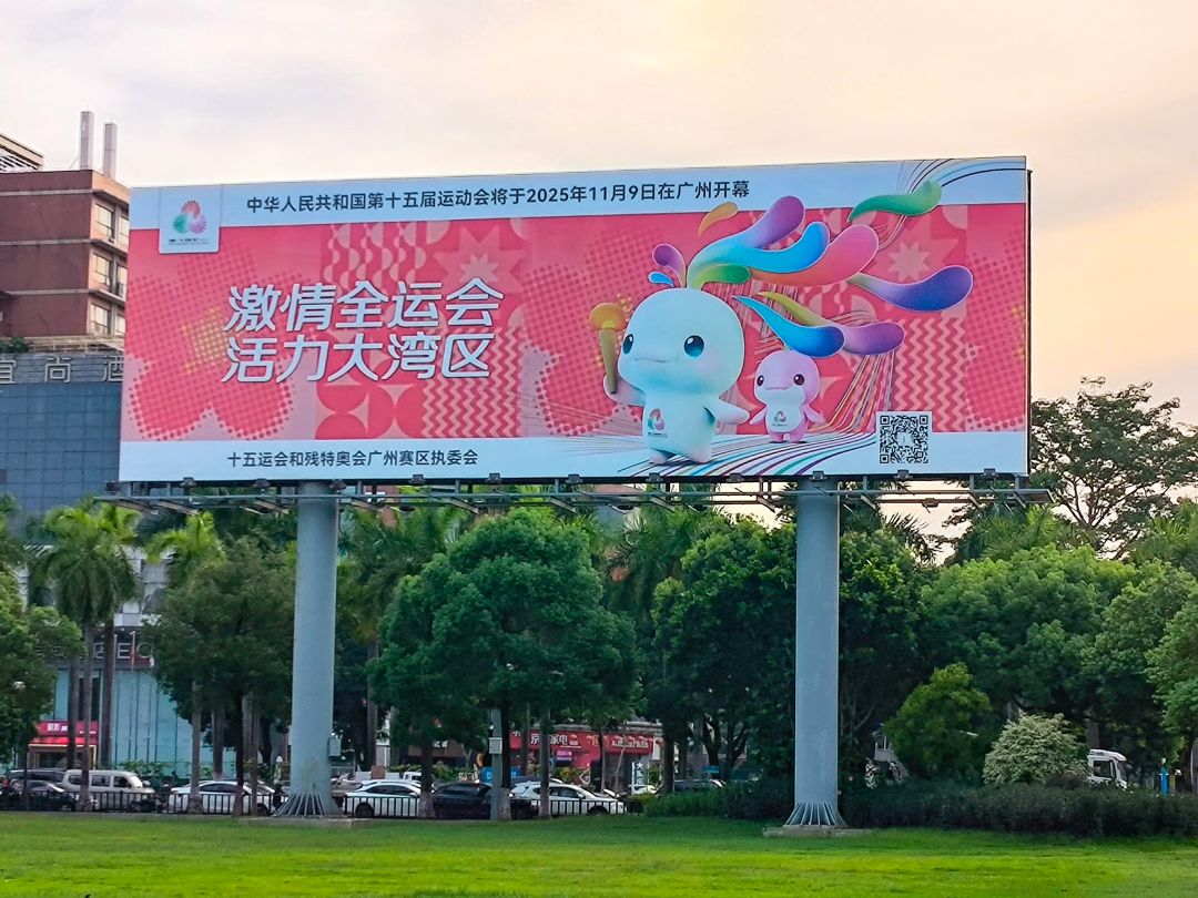 走进如今的花都街头,全运气息扑面而来。全运元素早已通过多种形式,深度融入这座城市的方方面面:花都广场、广州北站等节点布置了数个精美景观小品;主干道公交站台焕然一新;“全运专题巴士”穿梭大街小巷;上百块LED电子屏轮番展播赛事相关内容;近千幅灯柱道旗和数个大型户外宣传牌点缀重点路段……