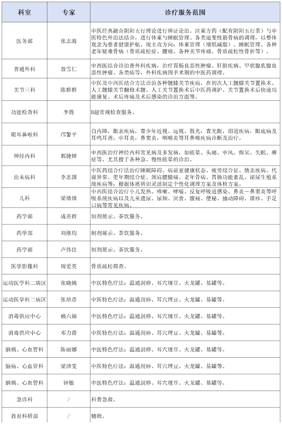1. 多科室专家坐诊:关节三科、外科、治未病科、神经内科、眼耳鼻喉科等多个科室专家团队,为居民提供一对一问诊服务。