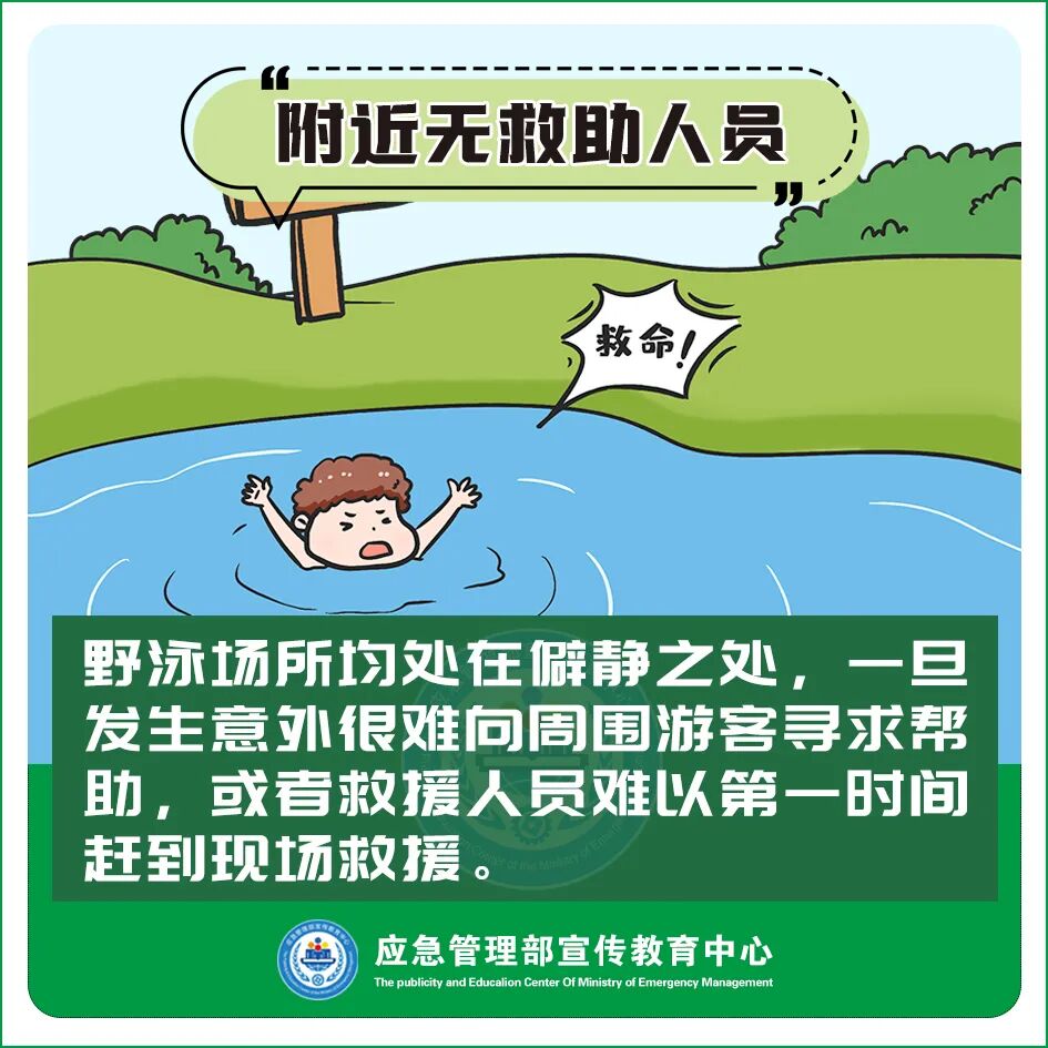 ●人员稀少。野泳场所通常人员稀少,一旦发生意外,很难第一时间求救或被救,存在很大的安全隐患。