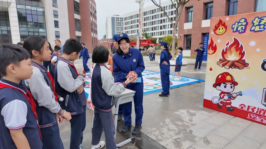 活动还举行了消防员会活动,现场精心设置多个消防互动游戏体验区,将知识学习与趣味活动深度融合。在知识大转盘区,学生需对转盘转动停止后所指向的消防安全问题快速作答;投骰子知识大挑战环节,活动所用骰子的每个面都对应着不同的用火用电安全问题,学生需根据骰子面上的问题作答,随机互动让知识记忆更深刻;消防飞行棋游戏则将消防知识点融入每一步行进规则,学生每走一格都能学习消防常识,在步步进阶中掌握消防技能;“消防隐患来找茬”环节,工作人员出示了印有安全隐患场景的卡片,让学生找出并指出隐患所在,在答题过程中巩固消防知识。所有游戏均以积分激励机制,学生们踊跃参与,在欢笑与思考中掌握安全用火用电要点,极大激发了学习热情。