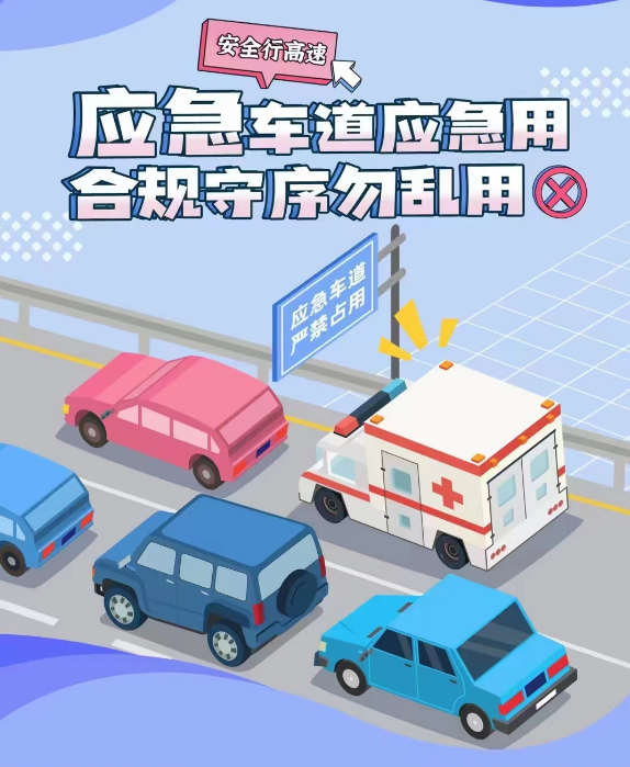 高速公路应急车道,又称高速公路的“生命通道”,不是“心急”车道!是专门供工程抢险、消防救援、医疗救护或交警执行紧急任务等处理应急事务的车辆使用的专用车道,请驾驶人勿贪一时方便而随意占用应急车道。