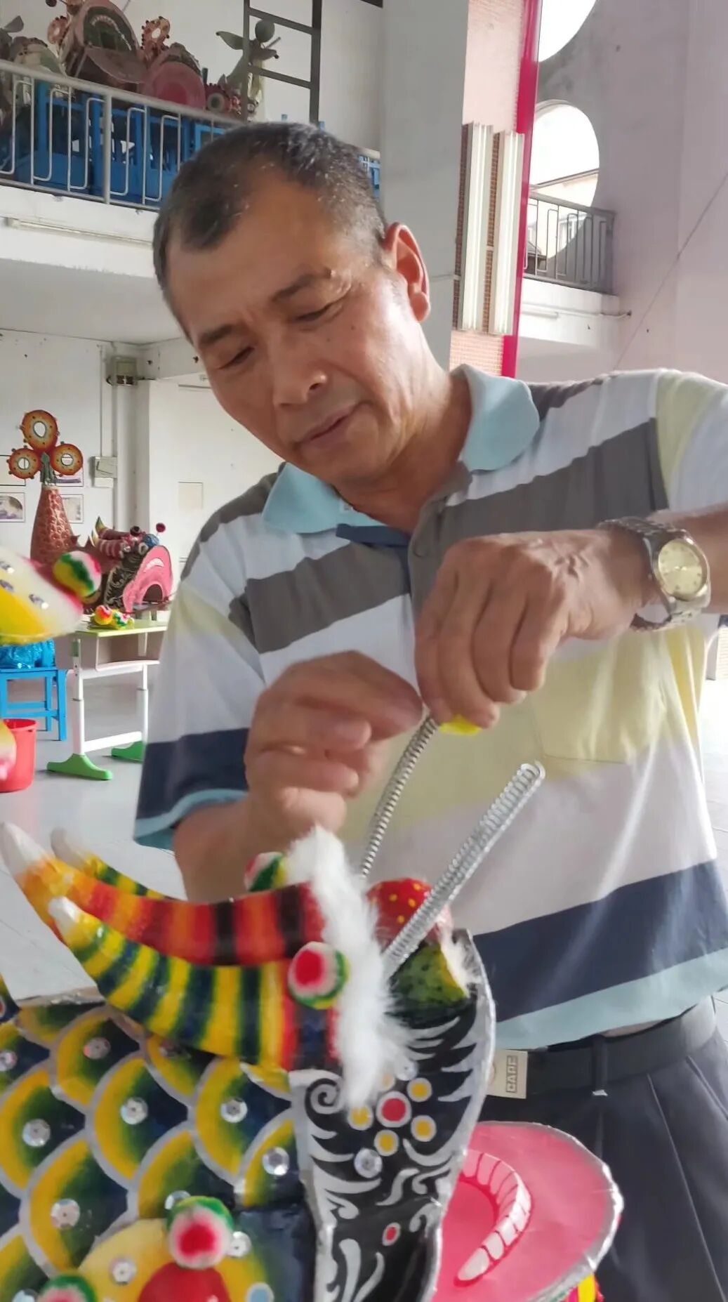 从1995年开始,他就到沙涌小学教孩子们鳌鱼扎作和舞蹈。2008年起,鳌鱼制作和舞蹈成了学校的特色课程,幸泽良被聘为顾问兼教练,一分钱不收,只为了把这手艺传下去。现在,沙涌小学的500多名学生和30多位教职工,人人都能来上一段鳌鱼舞,个个都是“非遗小传人”。