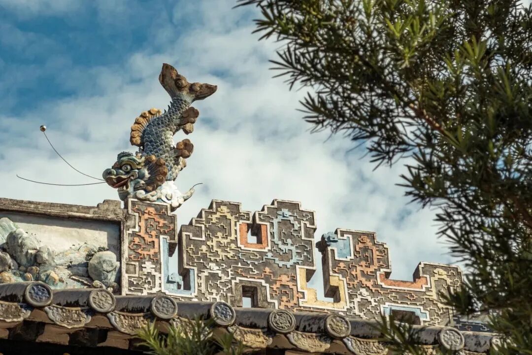 大岭村的显宗祠屋檐上的“金色鳌鱼”