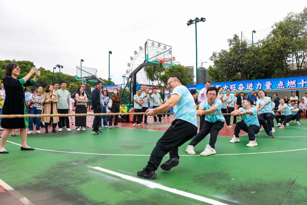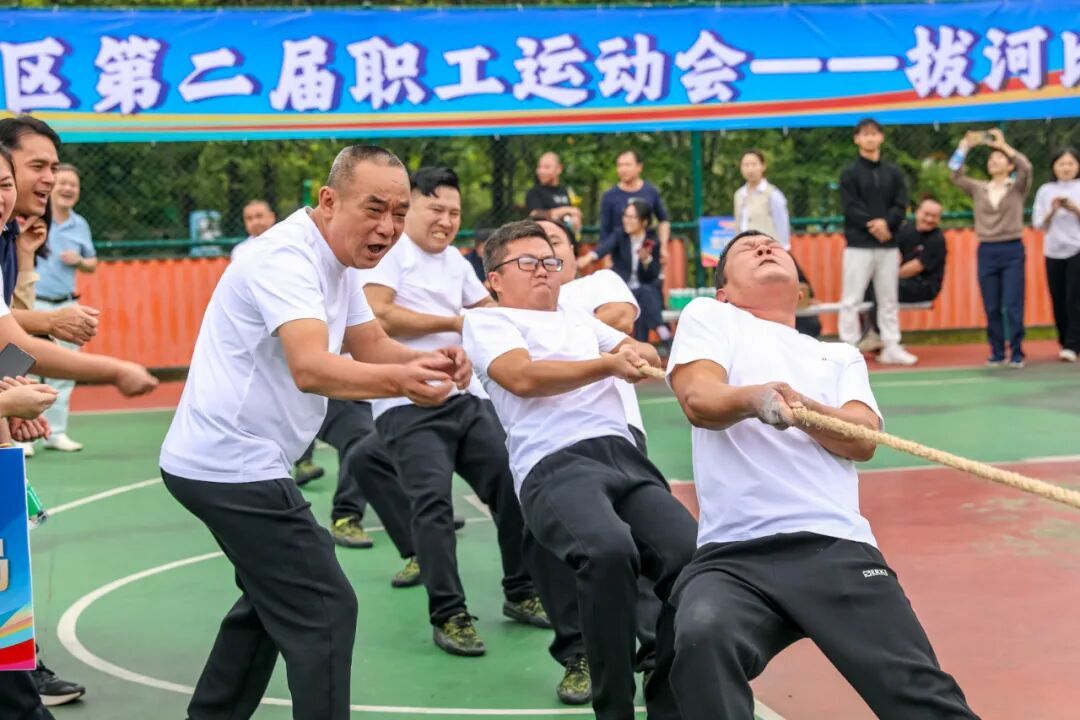宣誓完毕后,拔河比赛率先拉开战幕,参赛队伍迅速进入状态,队员们齐心协力、奋勇争先,赛场下加油声、呐喊声此起彼伏,瞬间点燃了整场运动会的激情。