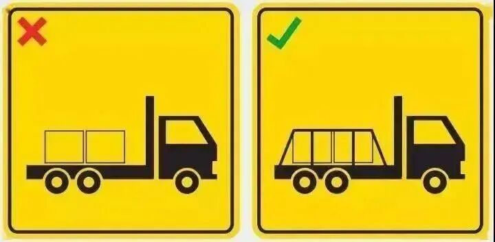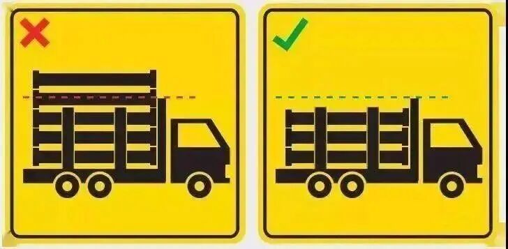 4、规范装载:货车装载的货物超高、超重,会扩大视野盲区,容易出现爆胎、挤占车道、货物遗撒,极易导致车辆侧翻等交通安全隐患。货车驾驶人要自觉遵守道路交通法律法规,规范装载,切勿超载运输!