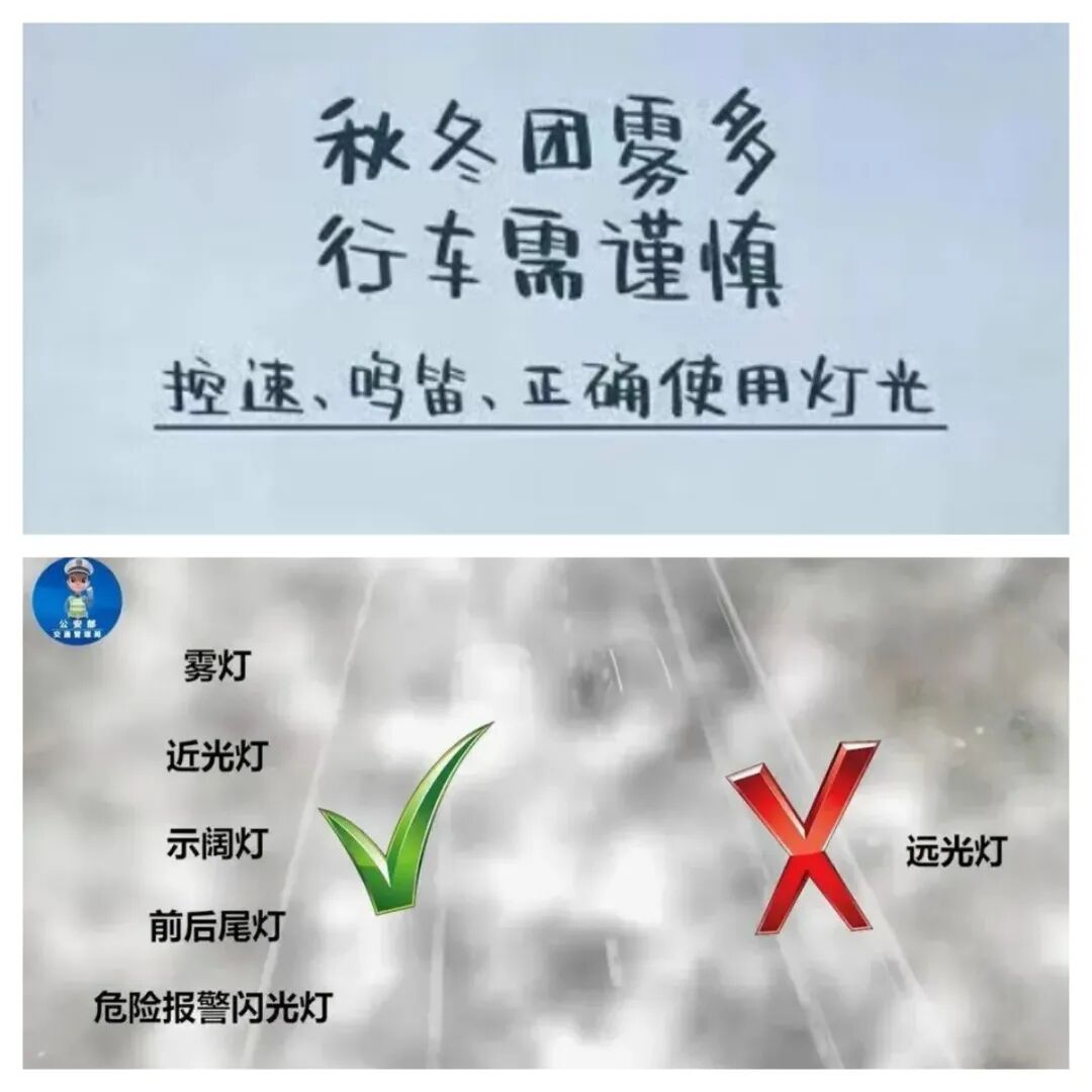 2、正确使用灯光:雨天、雾天、黄昏或夜间务必开启示廓灯和近光灯。能见度较低时务必开启雾灯和危险报警闪光灯(双闪)。雾天不要使用远光灯,以免形成漫反射,影响视线。进入隧道前请观察隧道口信号灯,并提前减速,及时开启近光灯。