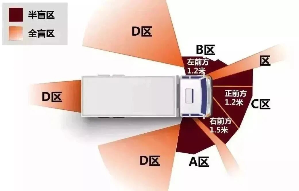 6、注意大货车盲区:货车体型庞大,驾驶员坐姿较高,车辆前后左右均有盲区,一不小心就可能发生事故,在行驶中或服务区,驾驶人应保持警惕。