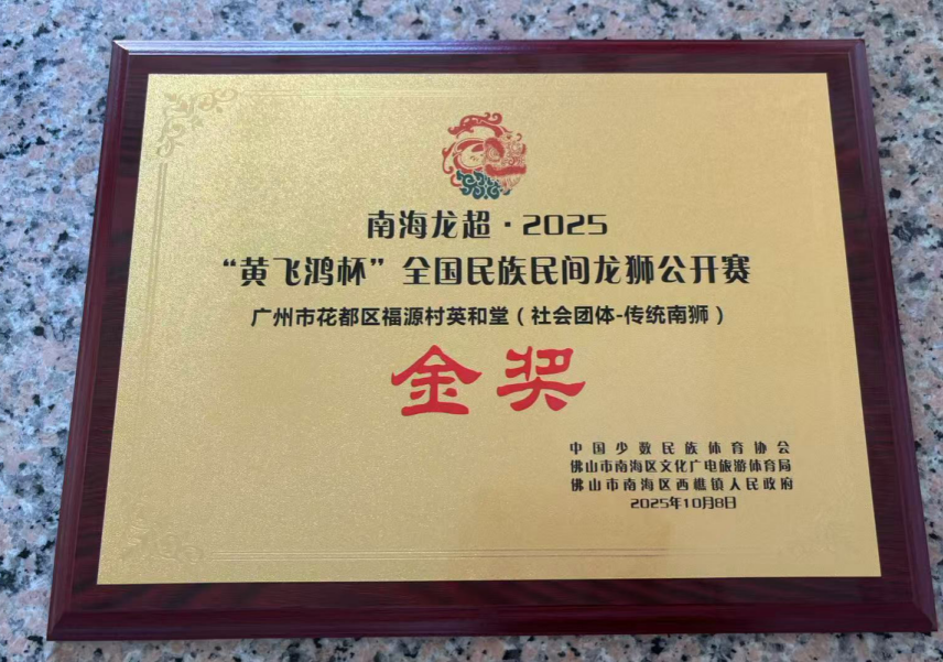 近日,2025年“黄飞鸿杯”全国民族民间龙狮公开赛在广东南海西樵山圆满收官。花都区花山镇福源村英和堂醒狮队以精湛的技艺、完美的配合与零失误的发挥,从全国百余支强队中脱颖而出,勇夺大赛金奖,展现了花山镇非遗文化的深厚积淀与时代活力。