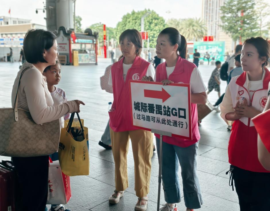 为做好十五运会和残特奥会志愿服务保障工作,番禺区妇联建立了区、镇(街)、村(社区)三级管理架构,系统指导巾帼志愿者完成个人账号注册。截至目前,番禺区已组建19支十五运会巾帼志愿服务团队,加入“志愿时”“I志愿”系统内的巾帼志愿者总人数达1100多人,形成了覆盖广泛、响应迅速的服务网络。其中,“石壁花姐”巾帼志愿服务队在十五运会和残特奥会服务保障工作中发挥了重要作用。今年国庆中秋假期期间,当广州南站日均到发旅客约75.7万人次、单日最高到发量突破92.2万人次时,150余名“石壁花姐”坚守岗位,在进出站口、公交站场、地铁站入口等重点区域,为旅客提供路线指引、换乘建议和爱心帮扶,成为展示广州城市形象的重要窗口。