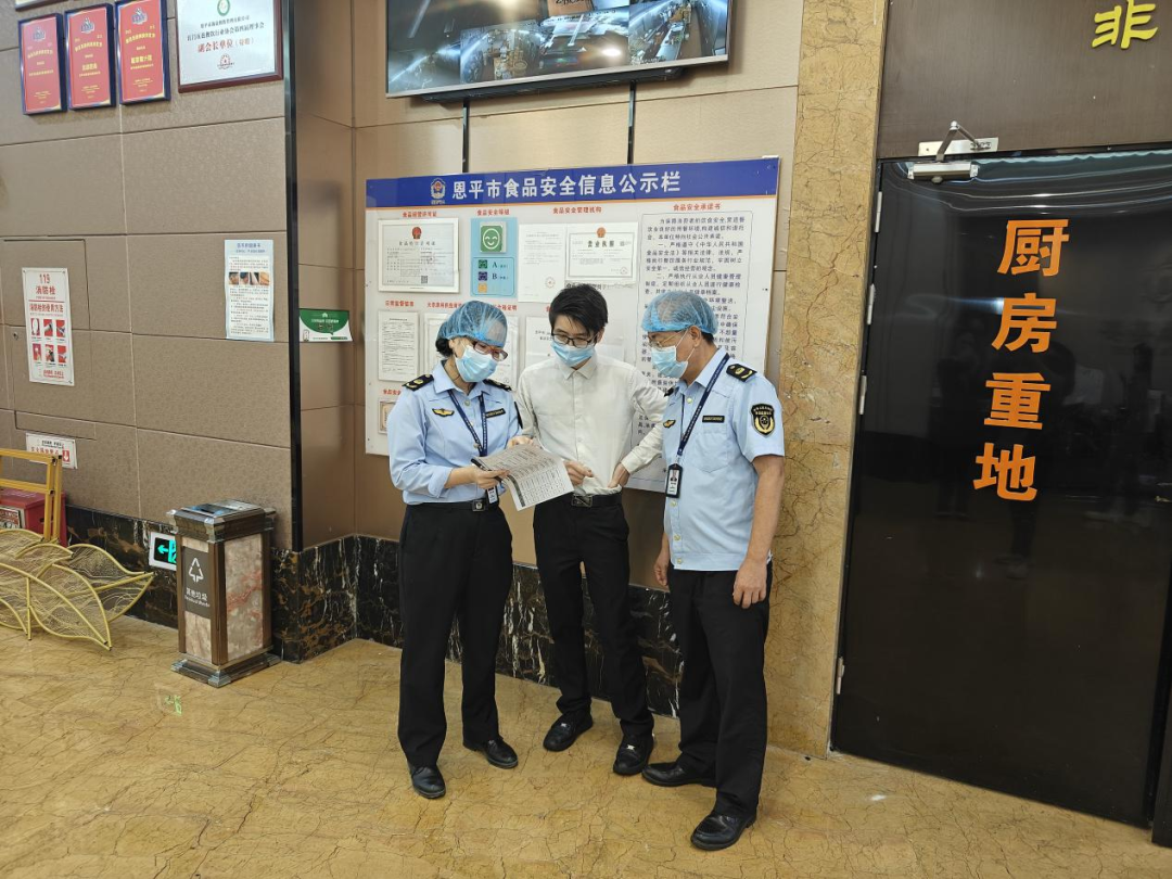 恩平市加强接待酒店食品安全监管,实施“提前介入、重点监督”,执法人员持续加强接待酒店监督检查,督促酒店深入开展爱国卫生运动,对食品加工操作处理区、就餐区等区域进行全面、彻底的清洁与消杀,确保环境整洁卫生。严格落实“三清”“四防”等工作,通过加强重点监督,实现问题早发现、早预警、早处置,有效消除食品安全风险隐患。同时,加强对赛场和接待酒店周边2公里范围内的食品经营单位检查,重点检查食品安全管理制度的落实情况、从业人员的健康管理、食品原料控制、餐饮具清洗消毒、“四防”设施等情况,累计督促接待酒店落实问题整改17个,对接待酒店周边979家次食品经营单位进行检查,发现并整改问题219个。
