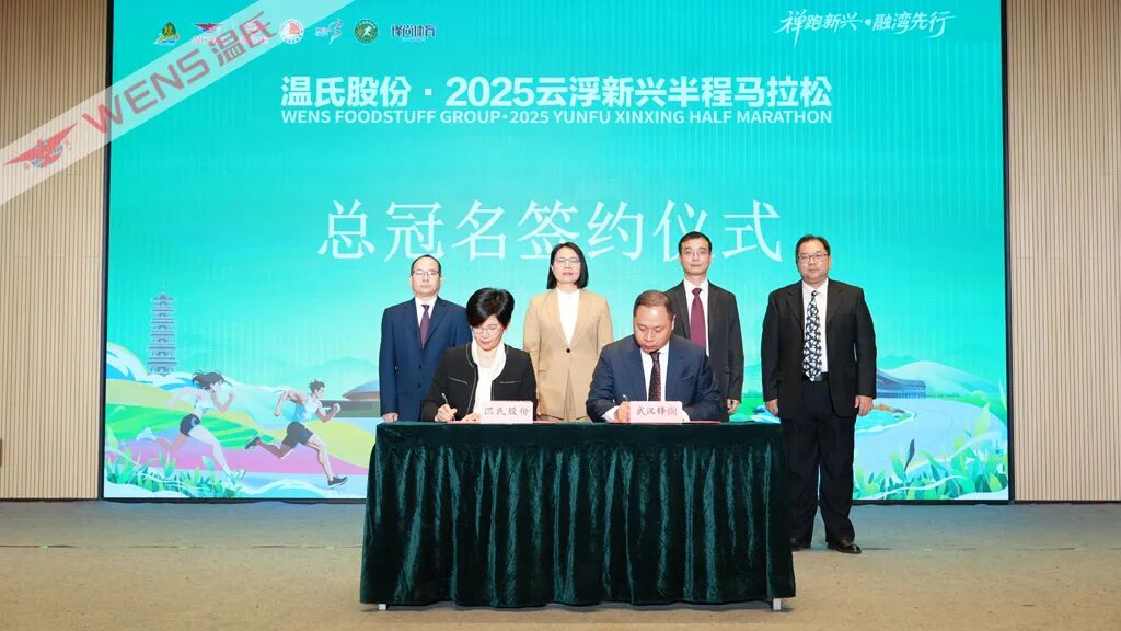现场专门举行了赞助企业签约及授牌仪式,见证政企携手共赢的美好时刻。其中,温氏股份已连续冠名新兴马拉松,成为赛事最坚实的合作伙伴。