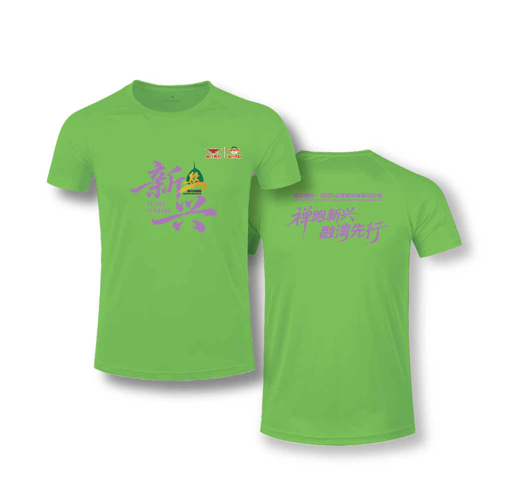 参赛服延续了往届标志性的绿色基调,寓意着新兴这座城市蓬勃向上的生命力。服装正面,“新兴”二字与赛事主题文字采用紫色设计,与绿色形成鲜明而和谐的撞色效果,视觉冲击力强,充分展现跑者的活力与赛事的热情。