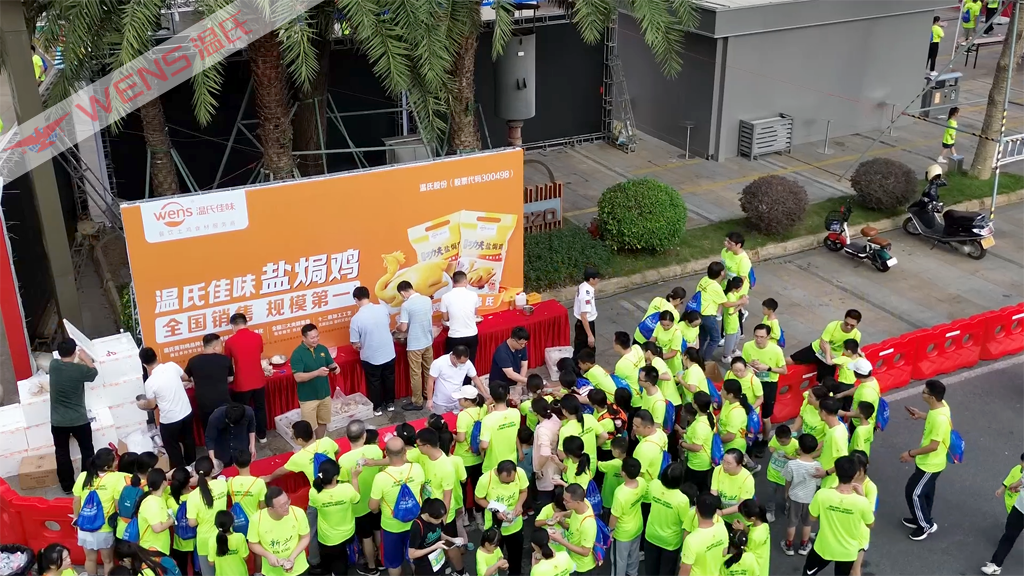 赛事配套活动丰富多彩,赛前举办“马拉松绘画进校园”活动及官方训练营,同时,打造“吃鸡一条街”特色美食体验区,提升选手参赛体验;赛后特别设置“破9吃鸡”环节,男子跑进1小时30分、女子跑进1小时45分即可获得温氏盐焗鸡,现场还设有主题打卡墙供选手留念。