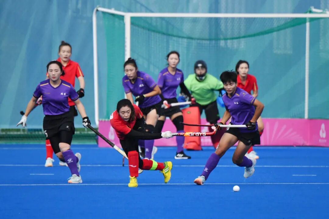 在备受瞩目的决赛中,四川队(紫)与吉林队(橙)展开激烈角逐。四川队凭借出色的整体配合和进攻效率,以5:0完胜吉林队,摘得本届全运会女子曲棍球项目金牌,吉林队夺得银牌。