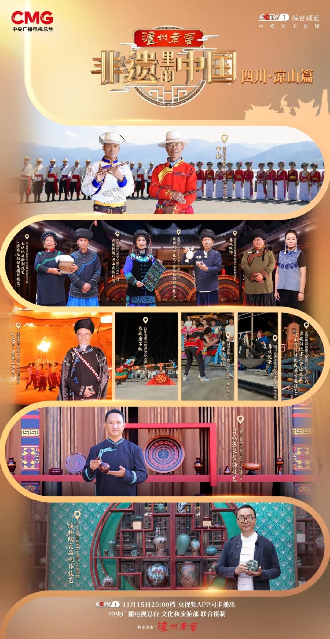 11月15日,大型文化节目《非遗里的中国》四川·凉山篇将在总台综合频道(CCTV-1)20:00档播出,央视频全网独家首播。让我们和《非遗里的中国》一起走进四川省凉山彝族自治州,探寻传统技艺的历史脉络,见证古老文化与现代生活的美好交融。