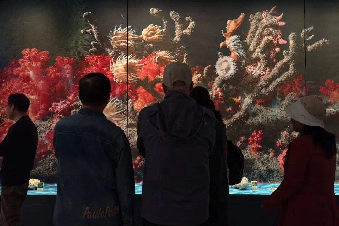 踏入展厅,看蔚蓝之下,黑珊瑚、柳珊瑚构筑起“海底森林”,鸡冠软珊瑚、筒星珊瑚交织成“水下花园”;雀鲷鱼群穿梭如银色风暴,海葵与寄居蟹共生共息……这些生动影像,是万山群岛作为粤港澳大湾区海洋生物多样性宝库的有力证明,也是对珠海海洋文化魅力的生动诠释。