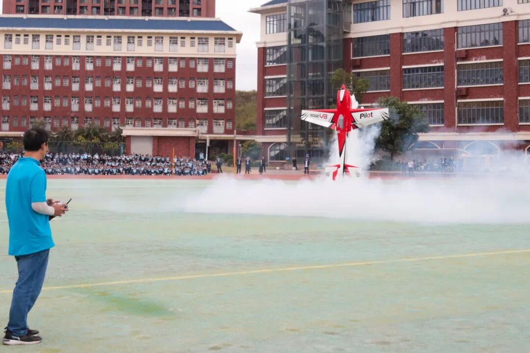 航模编队的穿梭,在操场上空划出一道道优美弧线,整齐划一的飞行动作、变幻莫测的飞行轨迹赢得了师生们的阵阵掌声与喝彩。这场表演不仅激发了学生对航空航天技术的兴趣,更通过跨校观摩交流,促进了高新区科技教育的经验共享与水平提升。