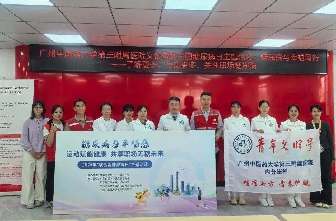 在联合国糖尿病日到来之际,为提升广大居民朋友对糖尿病的防治意识、倡导健康生活方式,近日,广州中医药大学第三附属医院内分泌科医护团队走进荔湾区中南街道南丫社区,开展以“糖尿病与幸福同行——了解更多、行动更多、关注职场糖尿病”为主题的大型义诊活动,将三甲医院的优质医疗资源送到居民家门口,为居民朋友送上贴心的健康关怀。
