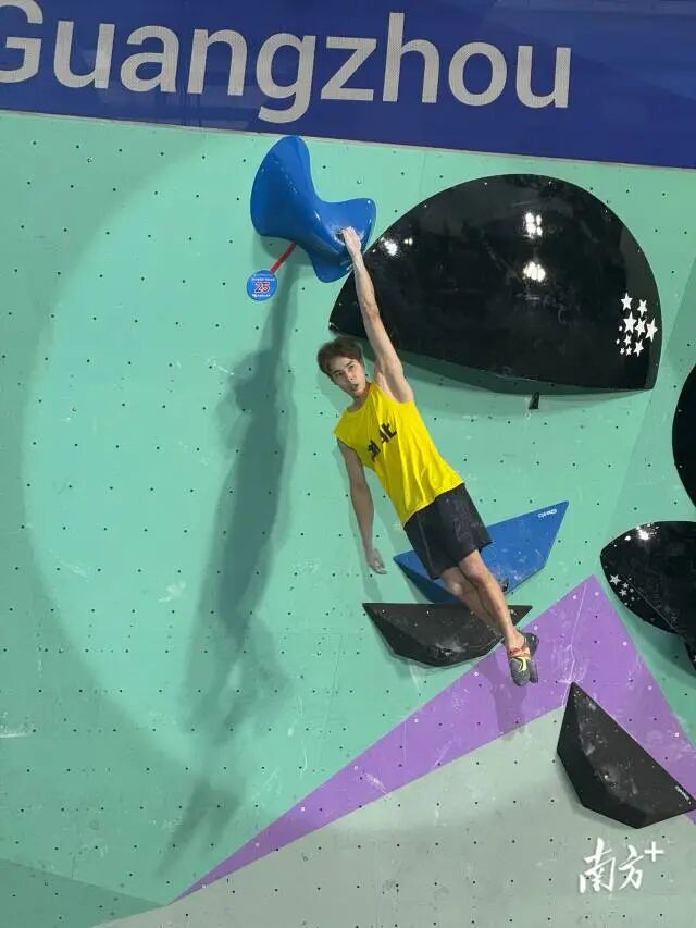 在男子攀石决赛中,潘愚非以99.9分的成绩将冠军稳稳收入囊中。这是他在本届全运会中收获的第二枚金牌,11月13日举行的十五运会男子攀岩难度决赛中,他夺得本届全运会首金。