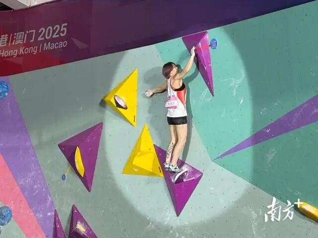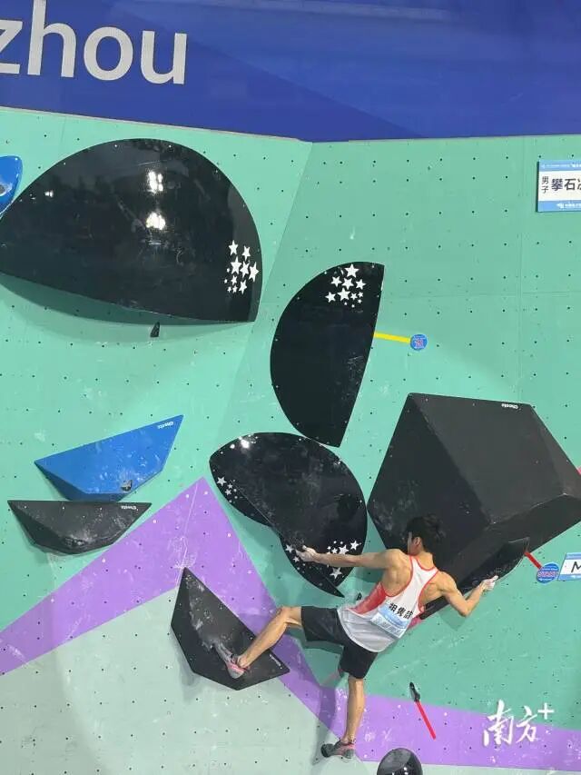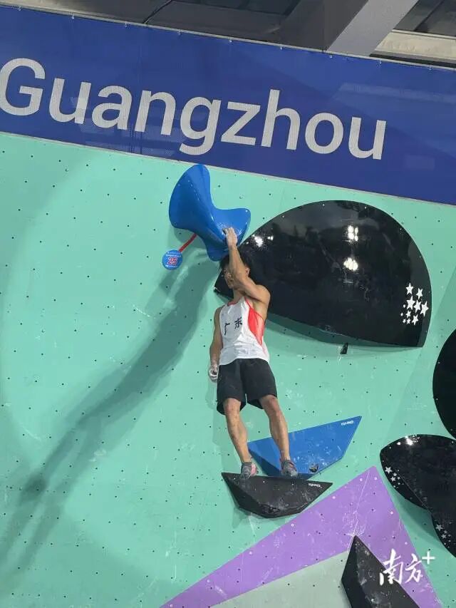 两名入围男子攀石决赛的广东队选手胡隽喆和姚晋伟分列第二名和第三名,展现了广东队在该项目上的整体实力。
