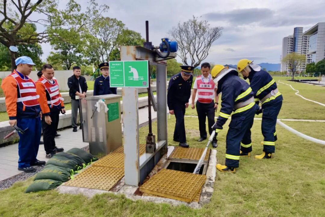 演练模拟喜珍公司发生火灾事故,含有重金属污染物的事故废水进入雨水管道,并通过故障雨水闸阀泄漏到厂区外环境的紧急场景。事故点下游为西江干流和永安水厂饮用水水源保护区,水环境敏感程度高,应急处置要求严苛。