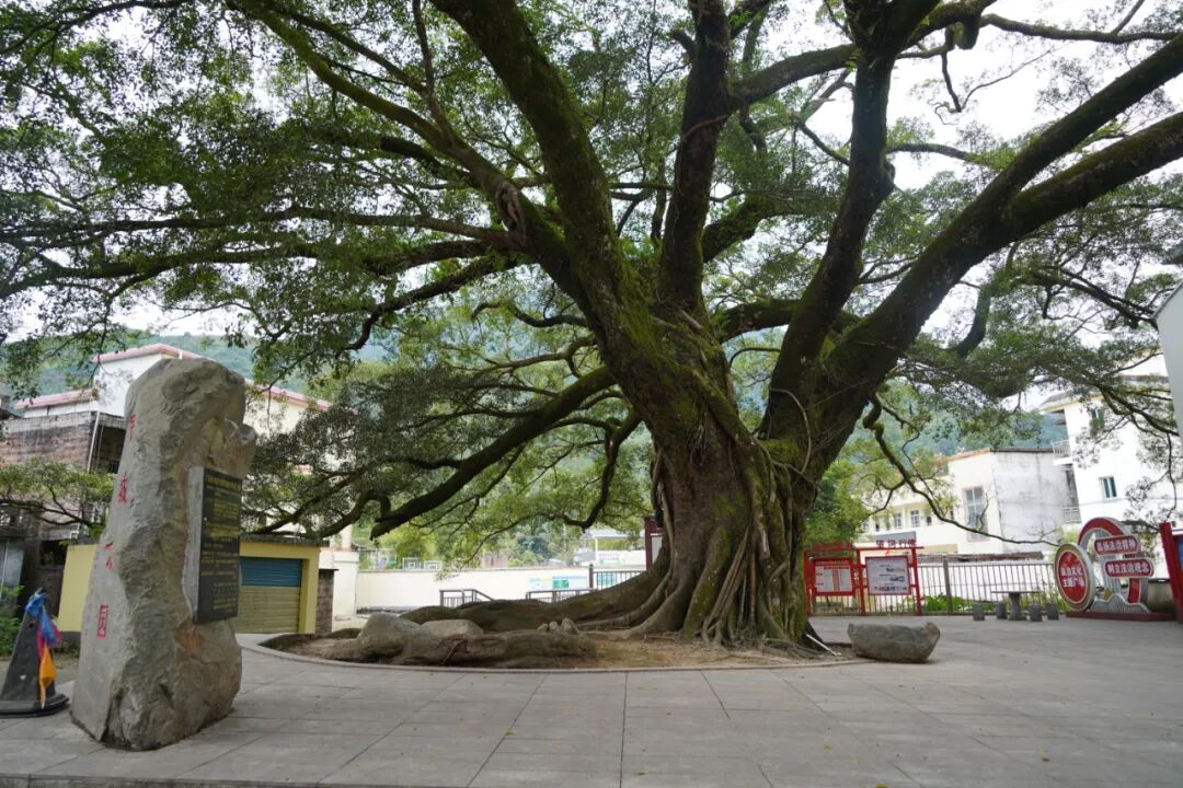 除了声名远播的红锥古树群,位于古城公园内的一棵百年榕树,同样承载着村庄的记忆与乡情。这棵榕树历经四百余年风雨沧桑,至今依然枝繁叶茂,巨大的树冠如华盖般撑开,形成一片宽阔的荫蔽之地。