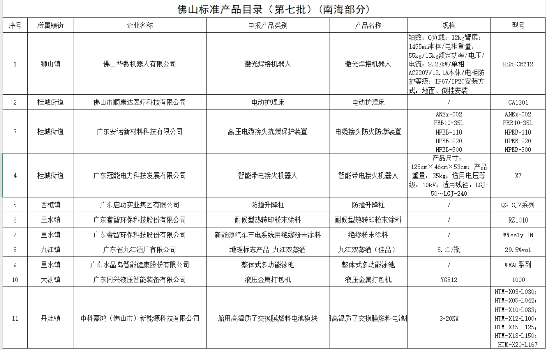 近日,佛山市市场监督管理局发布了《佛山标准产品目录(第七批)》,南海区有10家企业的11个产品成功入选。