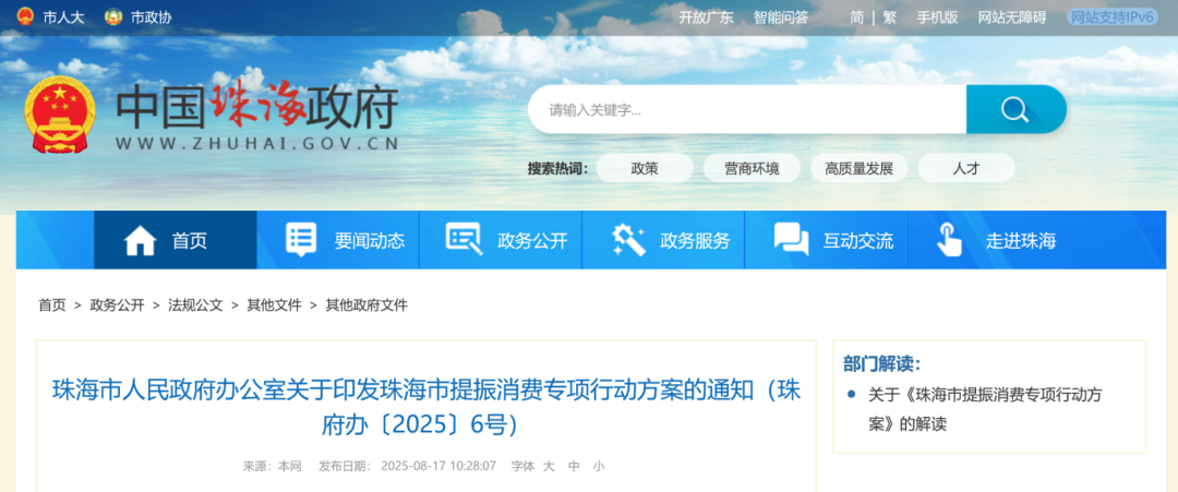 8月17日,珠海市人民政府官网公布《珠海市人民政府办公室关于印发珠海市提振消费专项行动方案的通知》,其中提到鼓励带薪年休假与小长假连休,支持弹性错峰休假以及探索设置中小学春秋假。