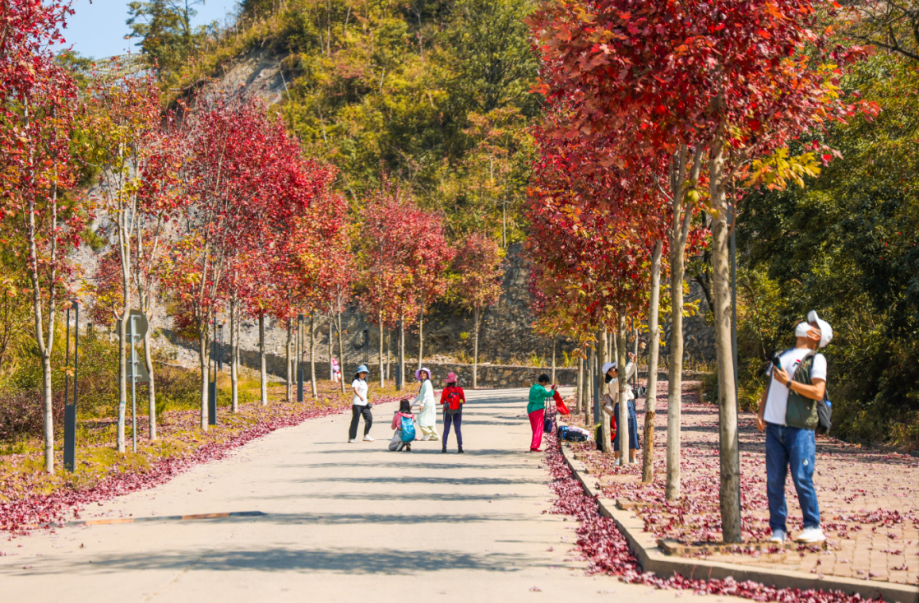 红枫大道是最先登场的惊艳,阳光穿过枝叶洒下斑驳光影,脚下的落叶铺成松软的"红毯",随手一拍都是电影级画面。观赏“枫”景之余,这里还有很多有趣的游玩项目及拍照打卡点呢~