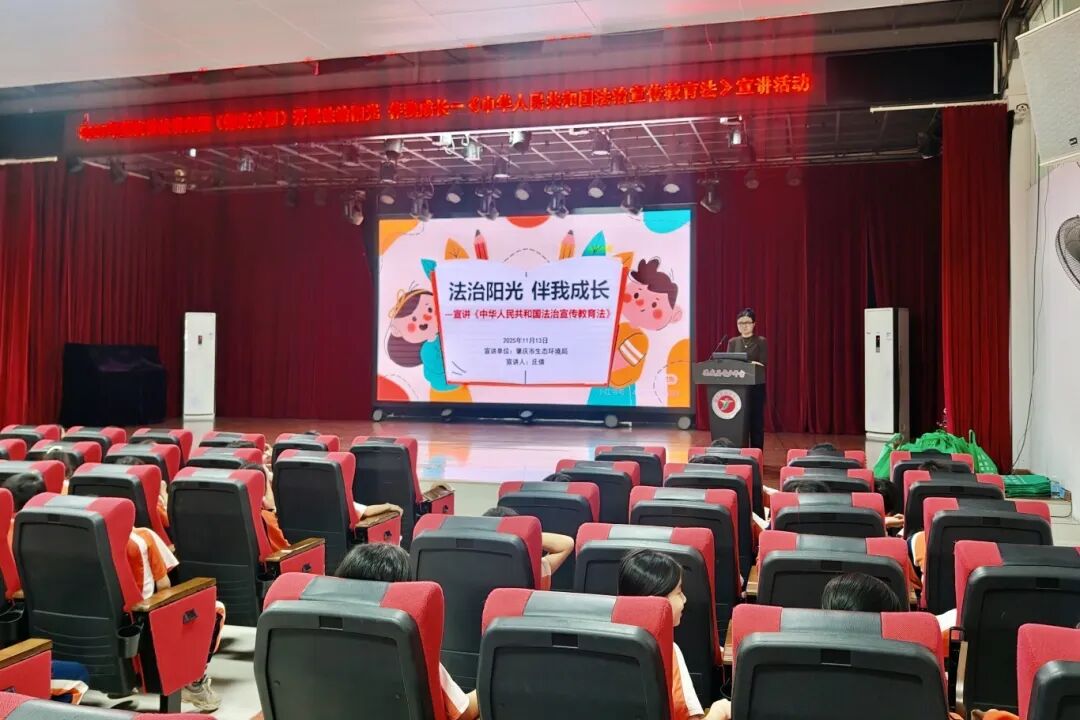 为进一步加强校园法治建设,弘扬社会主义法治精神,近日,肇庆市生态环境局普法讲师团宣讲员走进德庆县青少年宫,成功举办了一场别开生面的“法治宣传教育法进校园”活动,为50余名师生带来了一堂生动的法律“必修课”。