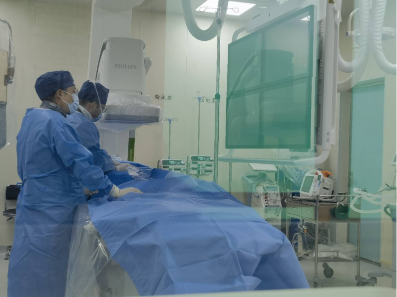 我院接到转诊指令后,胸痛中心绿色通道即刻全开,导管室、心血管科团队提前就位,备好手术器械静候患者。