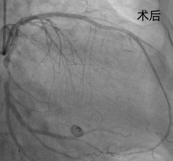钟先生抵达医院后,直接送入导管室,冠脉造影清晰显示:前降支(LAD)近端完全闭塞,远端血流中断,心肌正处于“断供”坏死的危急状态。