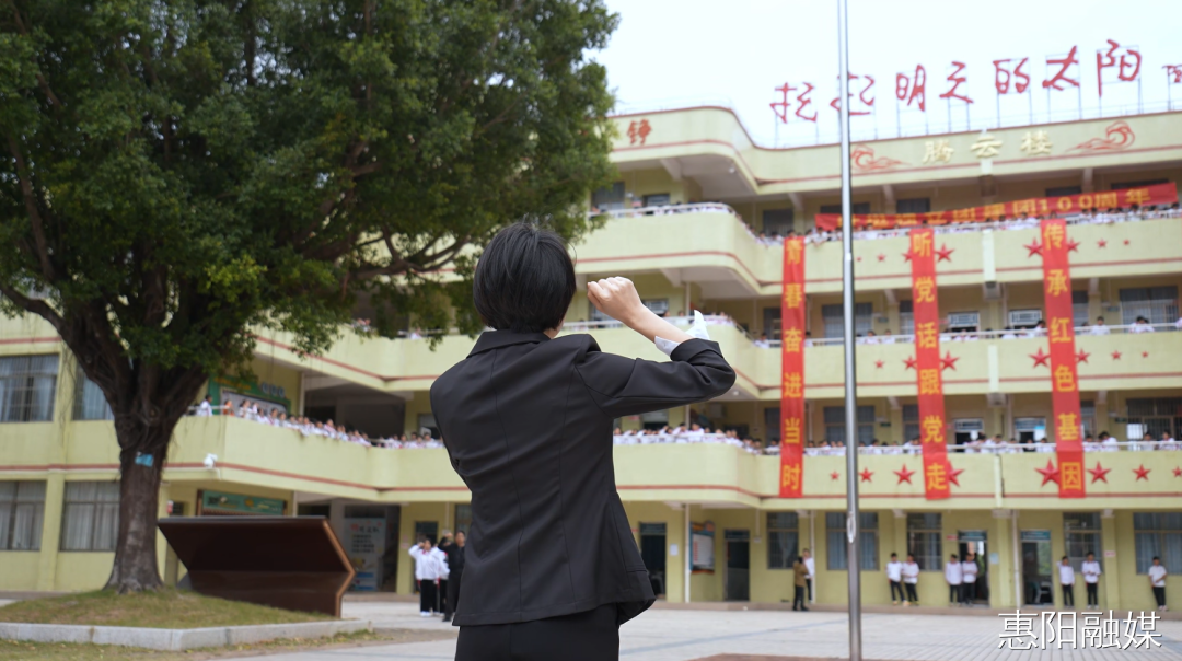 快闪结束后,全体师生肃立宣誓。千余名青少年高举右拳,齐声承诺继承铁军精神,坚定理想信念,锤炼铮铮铁骨,培养浩然正气,团结一心、艰苦奋斗,做新时代的追梦人。
