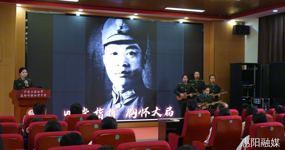 同日上午,活动主场转移至中国工农红军惠阳叶挺红军中学。叶挺纪念馆宣讲小分队带来“叶挺特色课堂”。宣讲员运用尤克里里弹唱、情景剧、剪影艺术等手法,讲述叶挺将军革命生涯与独立团的“铁军”精神。长达45分钟的沉浸式宣讲,让课本中的历史变得鲜活可感。