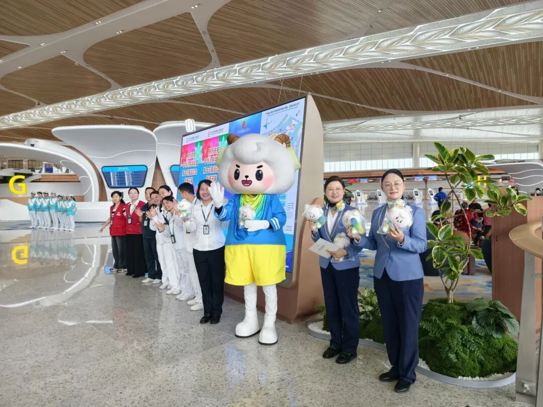 白云机场推出系列服务创新举措:开展“扮靓全运”“点亮全运”,合计在T1、T2、T3航站楼投入电子屏点位1250余处,其中T3航站楼广告大屏、室内交通信息显示屏、航显屏、到达行李信息屏、导航屏共693个滚动播放十五运宣传海报;灯箱广告76幅,80余个电视屏幕播放主题MV《气势如虹》;布置玻璃钢吉祥物公仔11套(10套玻璃钢+1套充气),涵盖机场大道、航站楼出发层车道、出发厅、到达厅和综合交通中心、政要贵宾厅;3 处双赛倒计时装置实时提醒赛事进程,布置5处景观小品和72组机场大道(南北双向)道旗,形成“抬头可见、驻足可观” 的浓厚氛围。开展“全运来了 一起运动吧”“全运猜猜猜”等互动活动提升旅客参与感;“致敬冠军”活动为赛事健儿举办欢送仪式,传递城市温情;“精彩全运惠” 联动商铺,推出专享优惠。