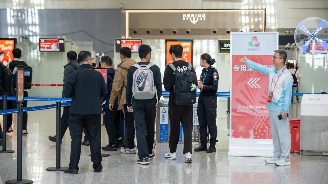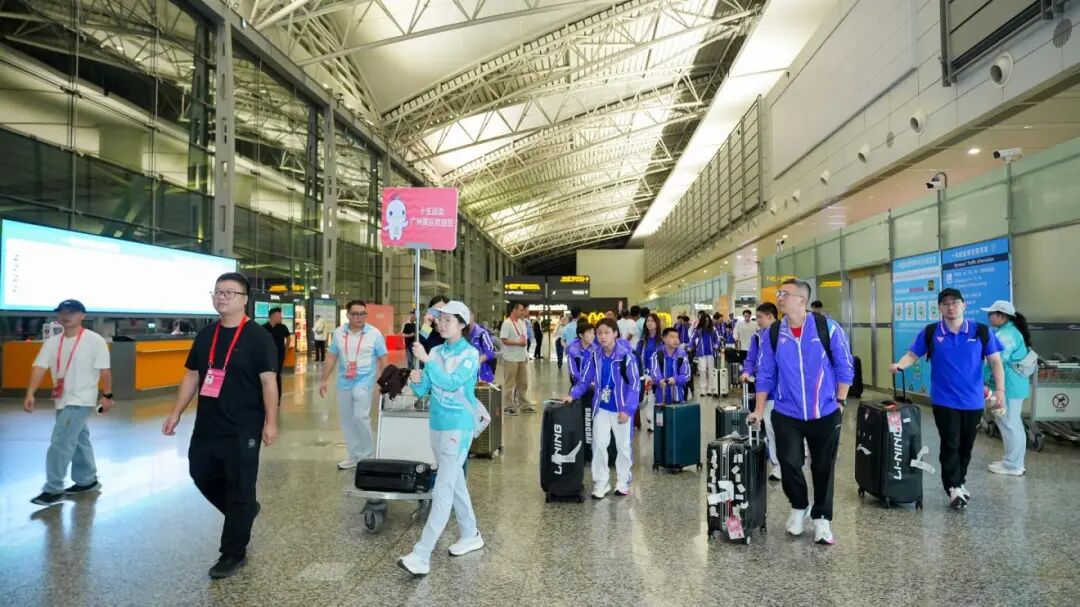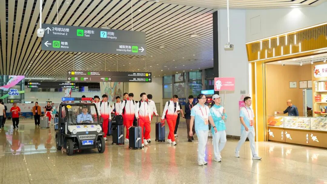 白云机场抽调优秀管培生组建“春风服务”十五运会志愿者团队,提前开展服务标准、应急处置、手语基础培训;接机时提前30分钟抵达飞机廊桥口等候,手举“十五运会接待”标识牌,“点对点”引导至机场出口并与市执委“小海豚”志愿者团队交接,形成全流程精准引导。330余名来自广州城市理工学院的“小海豚”志愿者,经专项培训和实战模拟后成为服务主力军,累计出动超过2400人次,为赛会来宾提供引导咨询、行李协助、信息核对等精准服务。他们身着统一服装,以热情微笑和专业素养,在引导乘车、核验信息、规范流程、应急处置、安全提示等每一个环节,他们都以高度的责任心和专业性,落细落实服务保障举措,成为白云机场抵离服务一道亮丽风景线。