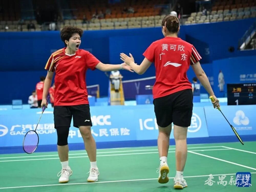 番禺小将李梦涵(左)在十五运会赛事中