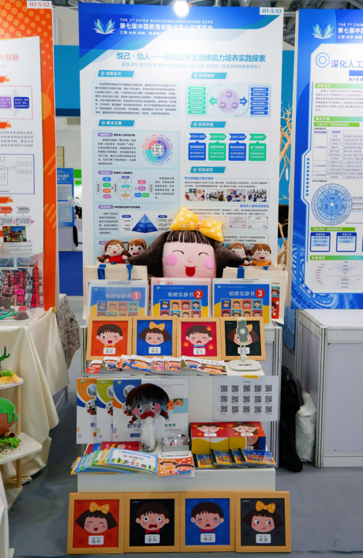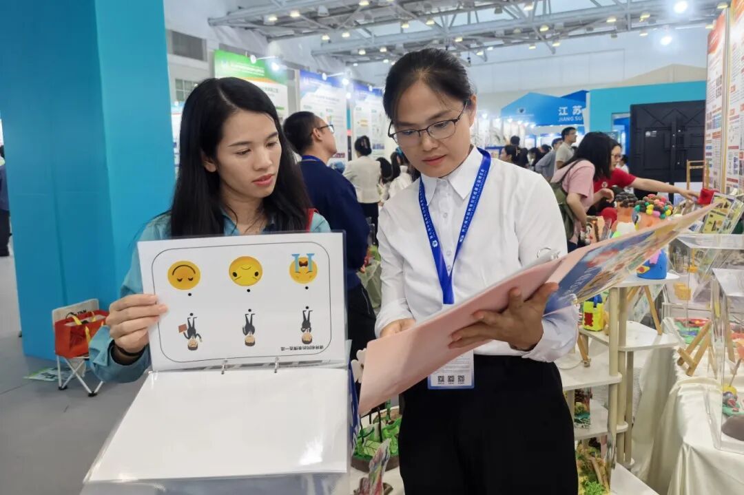 展区通过图文展板、特色文创、物化成果展示及互动体验等多元形式,全面呈现成果内涵,现场人流如织,充分彰显了珠海特教创新的吸引力与影响力。