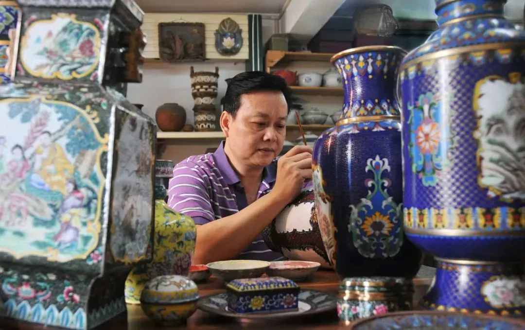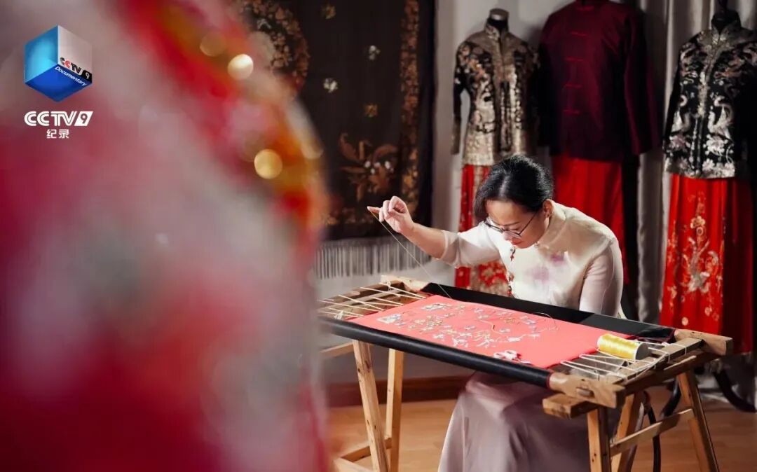 花都钉金绣裙褂制作技艺代表性传承人唐志茹,5岁开始学习刺绣,她积极开门收徒培养传承人,还走进社区、学校、文化馆等开班授课,并与非遗传承人、设计师等合作,不断推出时尚秀款,开发出一系列鞋类、装饰类等钉金绣产品,让这项非遗技艺得以传承和发展。