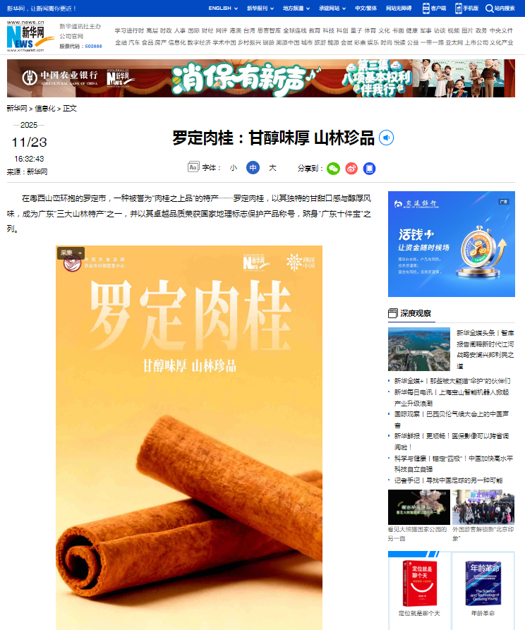 如今,罗定肉桂正以“地理标志+品牌化”的双轮驱动,持续提升产业价值,推动乡村振兴与农民增收,让这一缕源自山林的甘香,飘向更远的天地。