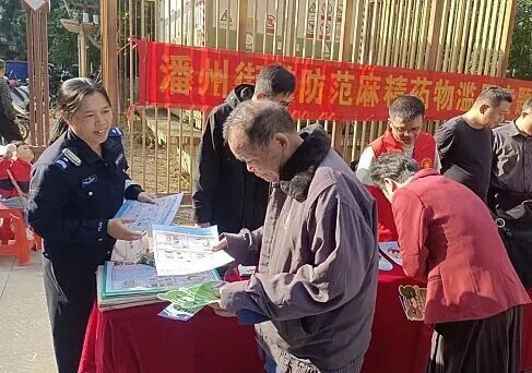 11月13日,高州市禁毒办、市公安局禁毒大队联合市司法局、潘州街道平安法治办、永镇派出所、高州市阳光志愿者协会及潘州街道社工站,在瀛洲公园共同开展一感两度宣传暨防范麻精药物滥用主题集中宣传活动。