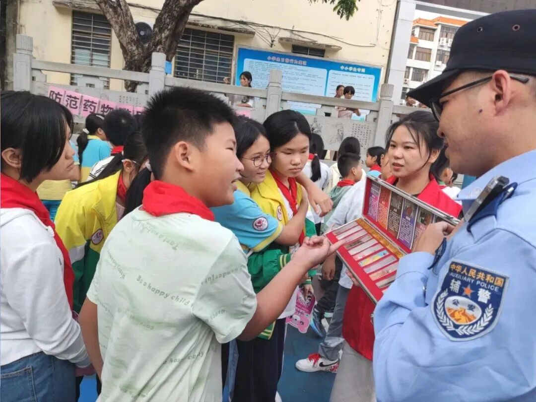 11月13日,高州市根子镇禁毒办联合根子派出所、居委会在根子中心小学开展以“防范药物滥用,护航健康人生”为主题的禁毒宣传活动。