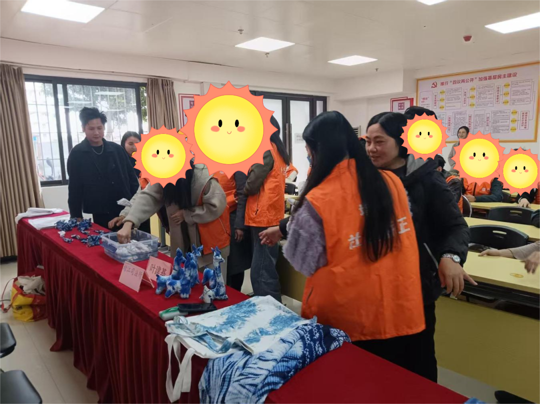 随后,叶建基细致讲解了扎染的基本原理、常用工具和材料,以及操作步骤,并现场示范操作技法。社区矫正对象们在其指导下,亲手完成了从图案设计、布料捆扎到浸水、染色、氧化、清洗、拆解的全过程。原本素白的布帕,经过匠心巧手与蓝色染液的碰撞,呈现出意趣天成的蓝白纹样。现场惊叹之声不绝于耳,学员们在亲身参与中体验到了非遗制作的乐趣与成就感。