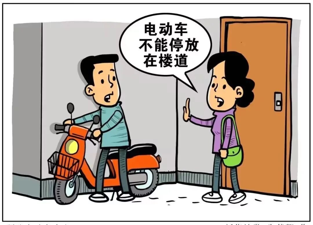 电动车应该在正确的停放区域分类停放,摆放整齐,留出通道。不能停放在楼梯口、消防通道等其他占用公共资源的地方,以防造成人车混行或交通安全隐患。