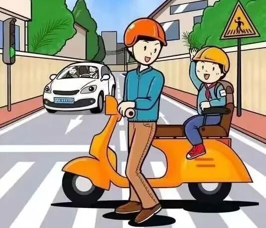 骑电动车上下班及骑电动自行车接送幼儿时,要做到“戴头盔、靠右行、载一人、不闯灯”。电动车限载一名12周岁以下未成年人,驾驶员和乘坐人员一定要自觉、正确戴好安全头盔,系好固定卡扣。